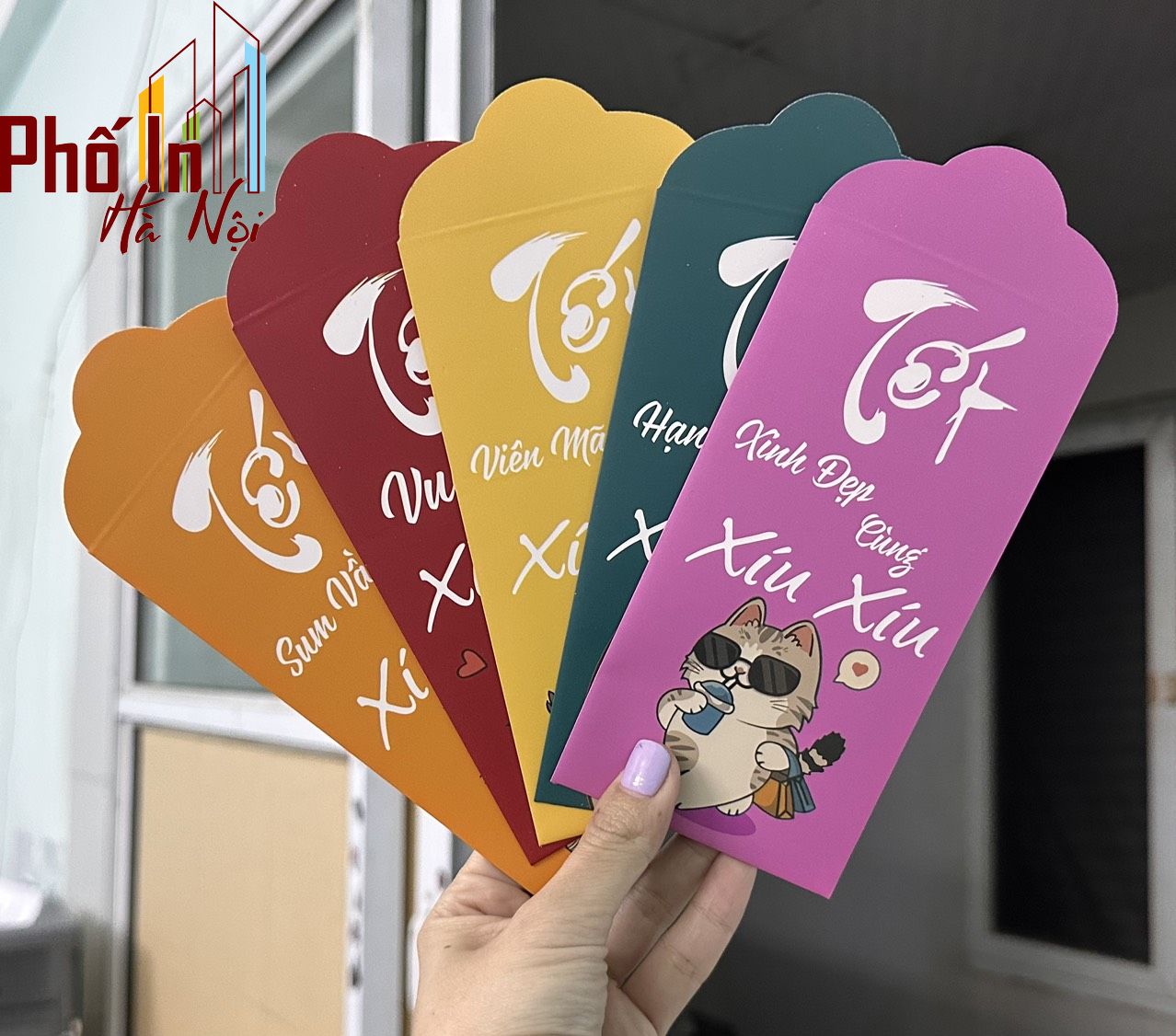 - Cán mờ hoặc cán bóng: Tăng độ bền cho sản phẩm và giúp bao lì xì thêm phần sang trọng.